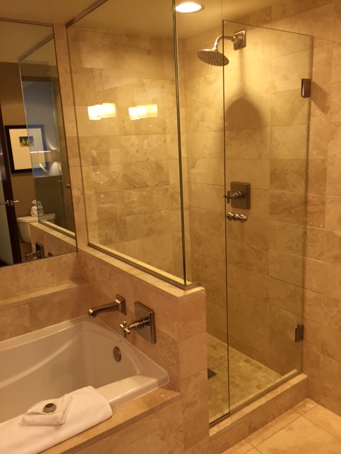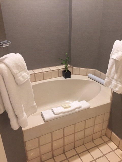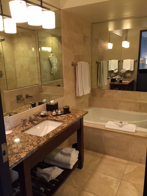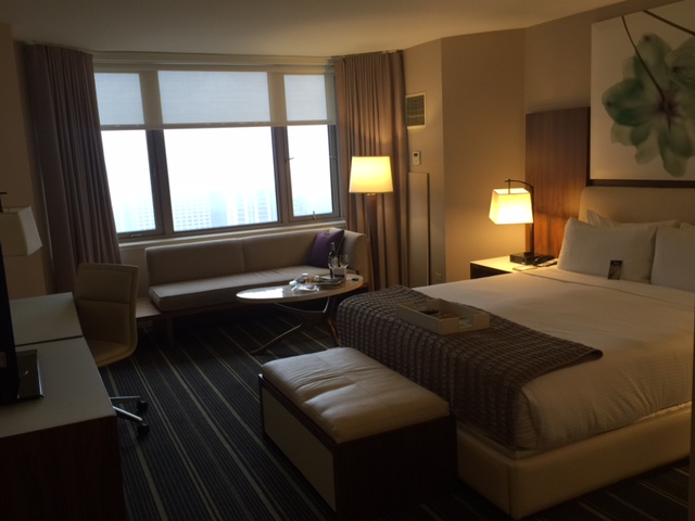 My king-bed room was on the 36th floor and overlooked Grant Park and the water. The furnishings aren’t brand new but are pristinely-maintained. The bedding made it so I never wanted to get up in the morning and the bathroom linens were top-quality.